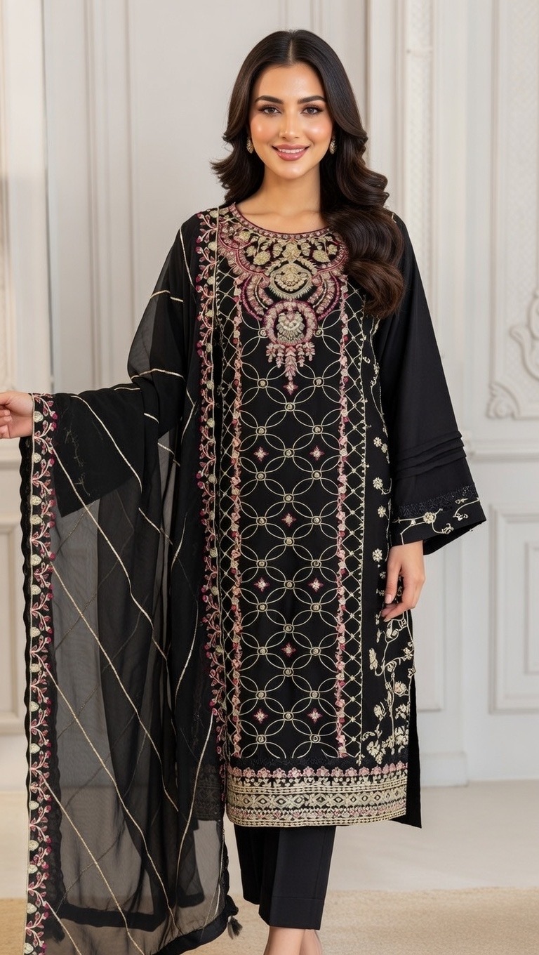 Aghanoor Chiffon Embroidered Kameez