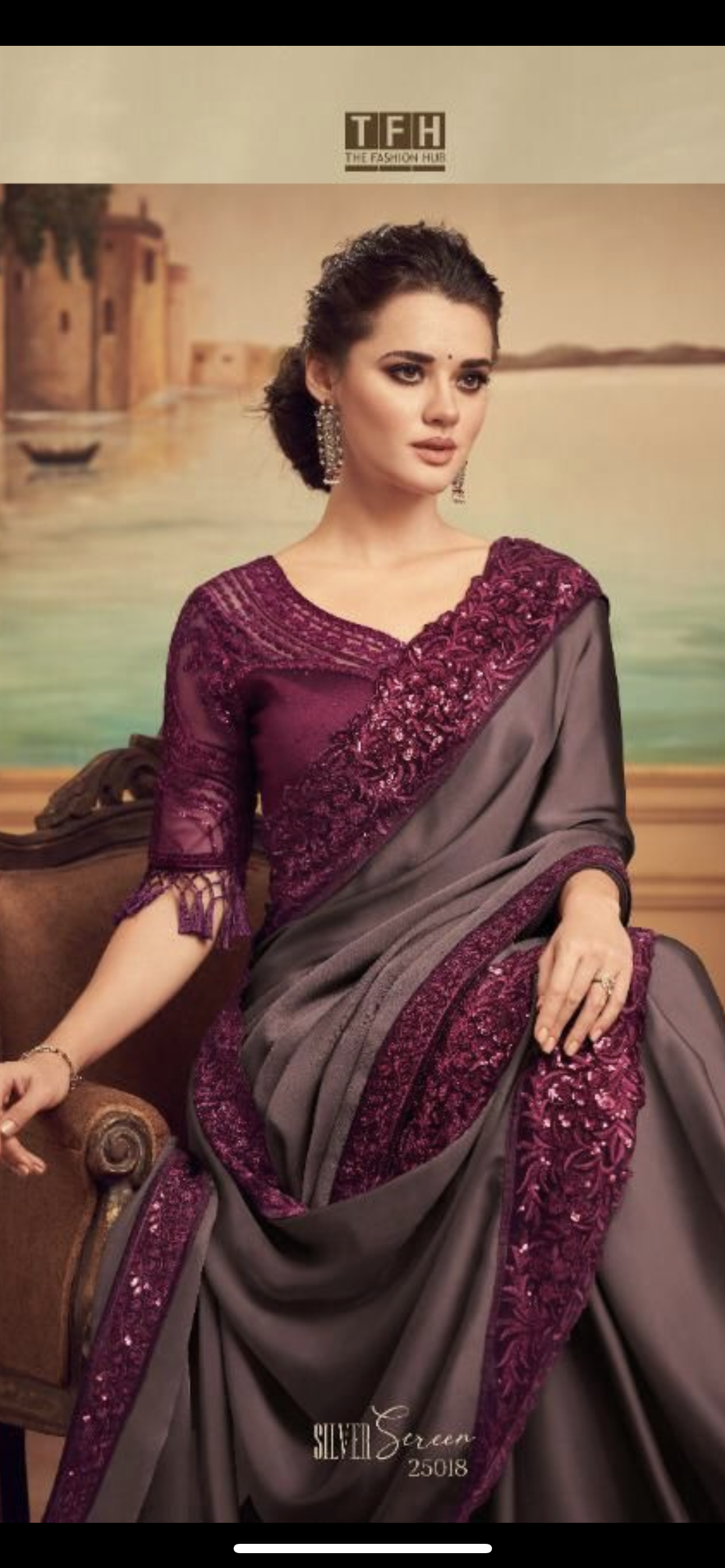 This saree features a very soft and elegant design, perfect for parties. Made from Magnum silk, the saree is not see-through, ensuring comfort and dignity. The blouse is pre-stitched, eliminating the hassle of finding a tailor, and is available in sizes ranging from 38 to 44 inches. Crafted from soft material, the blouse showcases a smooth surface adorned with sequins and a tarcel pattern. This designer saree and blouse combination will give you a vibrant and striking party look. Highly recommended!
