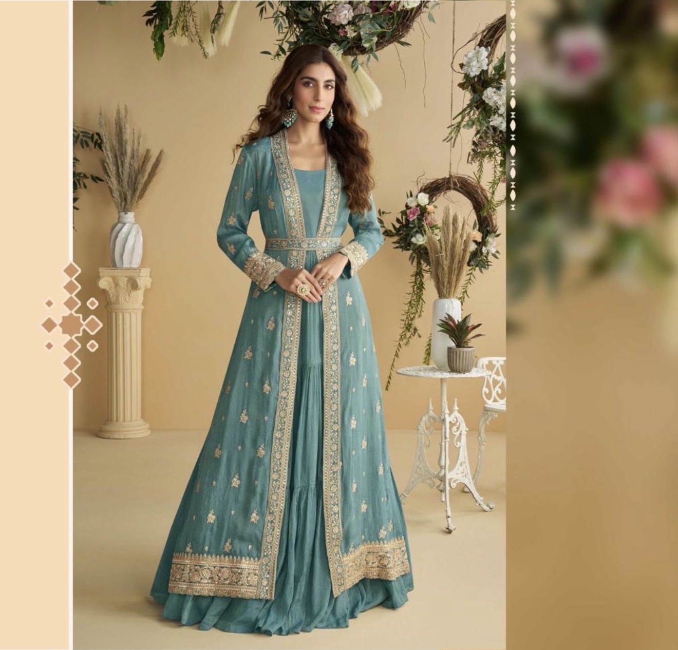 Introducing our latest Indowestern Anarkali Dress with Jacket – where tradition meets timeless sophistication. The Pink Anarkali features a structured flare, ornate borders, and a tailored waistband to create that royal silhouette. Perfect for weddings, mehndi nights, receptions, or any festive celebration where you want to leave a lasting impression. Luxurious silk blend base enhanced with intricate zari and resham embroidery, designed to flow with grace and elevate your festive presence. The jacket can be adjustable with belt.